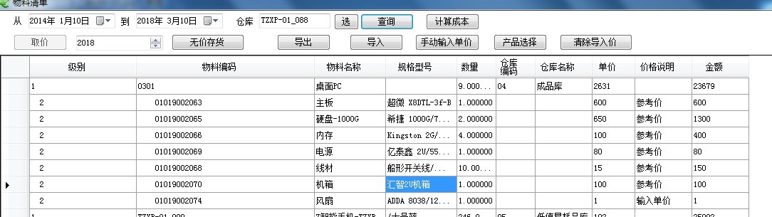 從用友的提取產(chǎn)品BOM,逐級展開到*末級材料,然后從價格庫中提取單價,卷積運算到每個層次的成本,按順序由低層到高層完成所有成本BOM層次的標準成本計算。